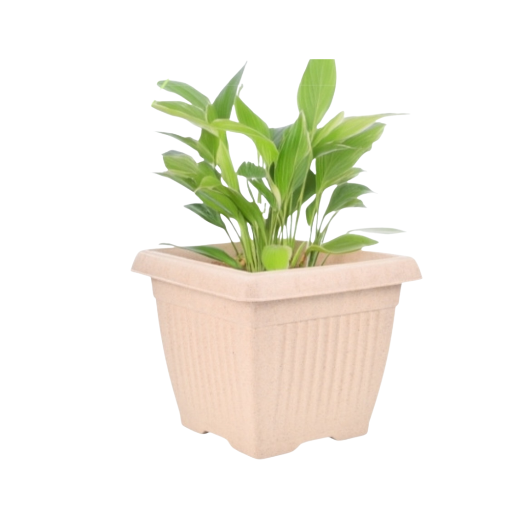 Bella Natural Square Planter (8 Inch) Fiber Clay Pot Container for Indoor and Outdoor Plants