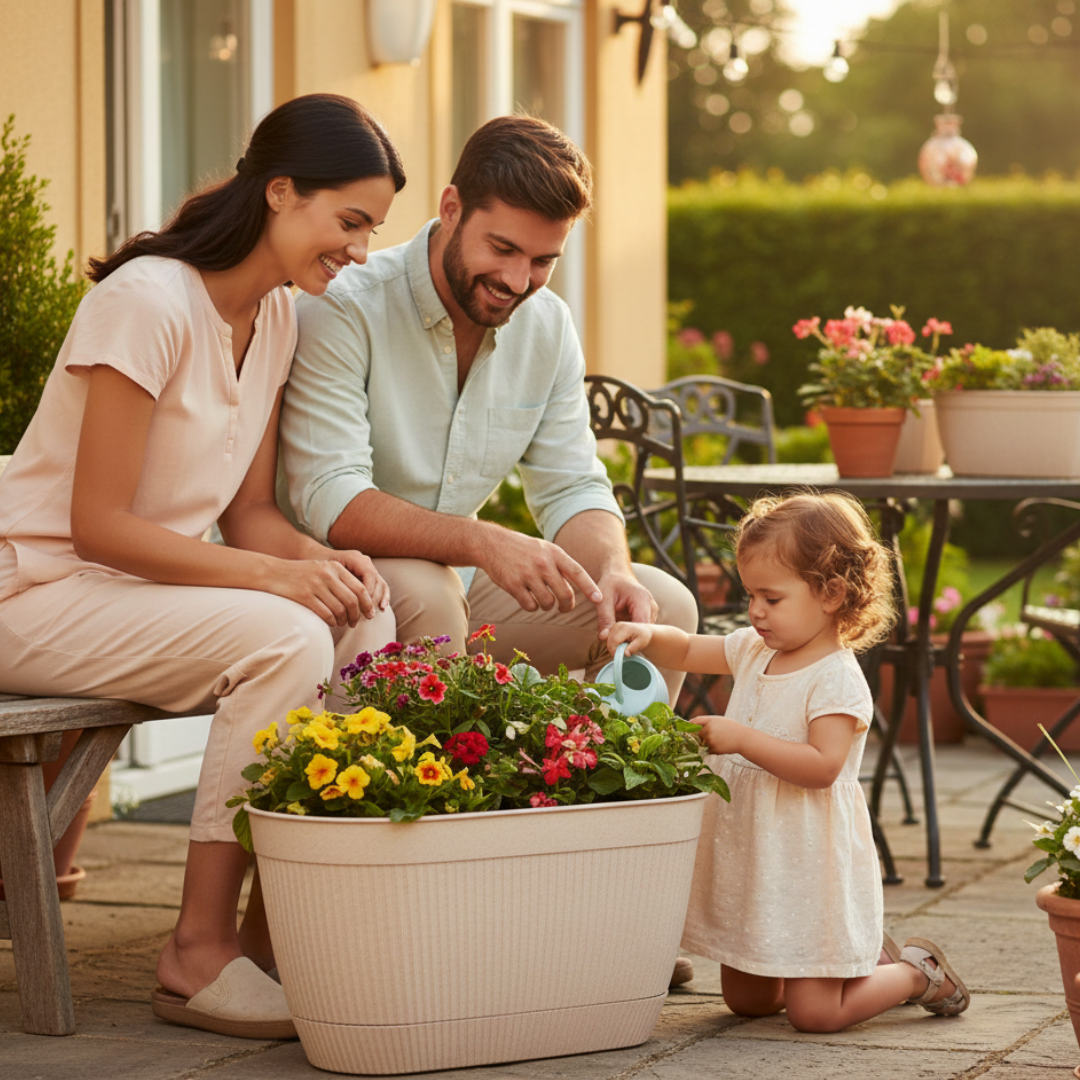 Modern Round Fluted Indoor/Outdoor Flower Pot for Home Decor and Office Desk Greenery